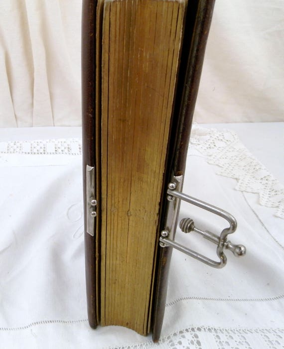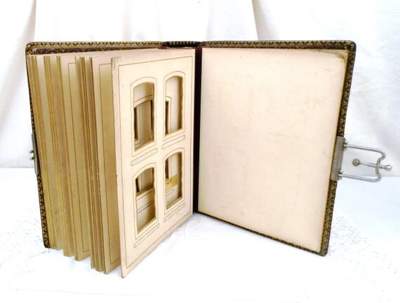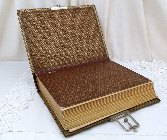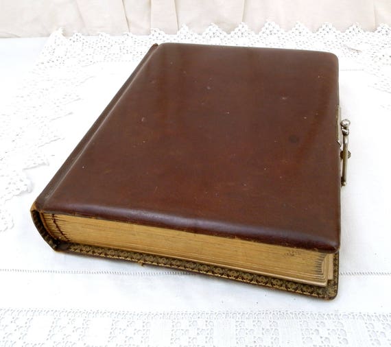 20% OFF coupon on Large Antique French Leather Bound Photo Portrait Album with Metal Lock and Gold Gilt Edges, Family Photograph Book, Brocante Home Decor by VintageDecorFrancais