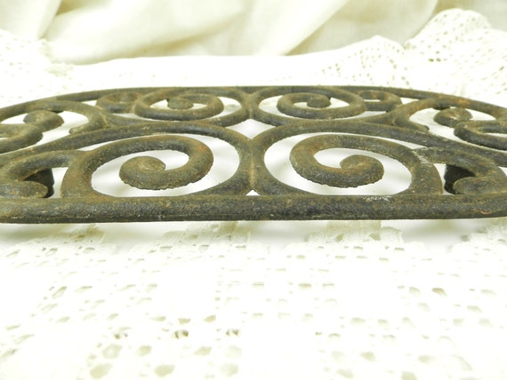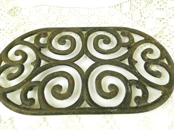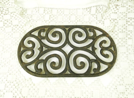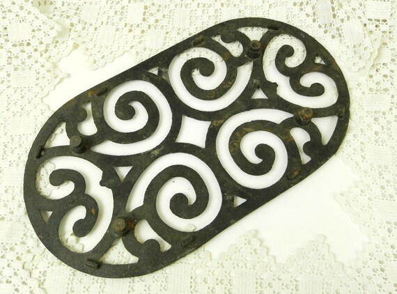 20% OFF coupon on Large Oval Shaped Vintage French Cast Iron Trivet / Heat Mat / Hot Plate, Country Cottage Kitchenware, Kitchen Decor, Rustic Kitchenalia by VintageDecorFrancais