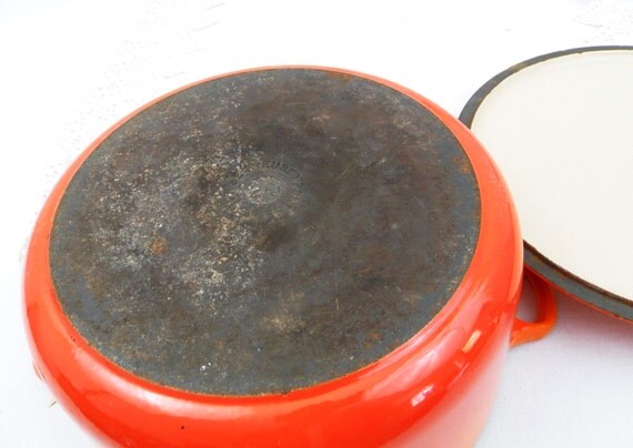 20% OFF coupon on Large Vintage French Bright Orange Enameled Cast Iron Le Creuset 4.5 Cooking Pan / Pot and Lid, Kitchen, French Oven, Cooking, Kitchenware by VintageDecorFrancais