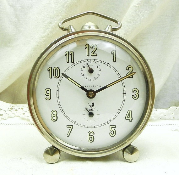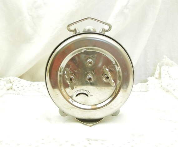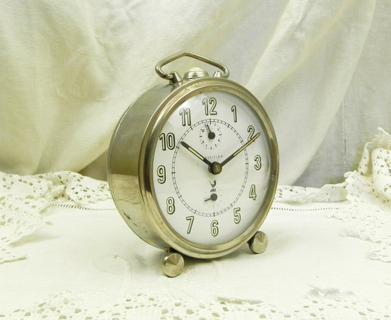 20% OFF coupon on Large Working Vintage Mid Century Chrome Metal Jaz Wind Up Mechanical Alarm Clock, French Bedside Timepiece, Brocante Bedroom Decor by VintageDecorFrancais