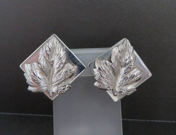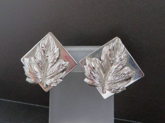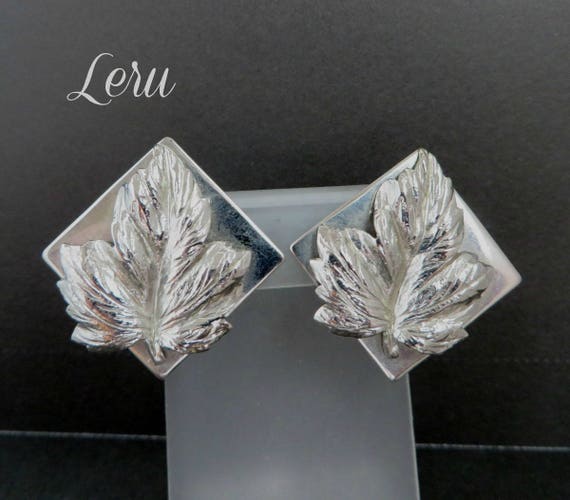 15% OFF coupon on Leaf Earrings, Square Leaf Earrings, Signed LERU Silver Tone Earrings, Clip-on Earrings, Gift for Her by LeesVintageJewels