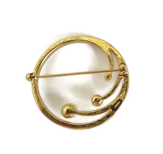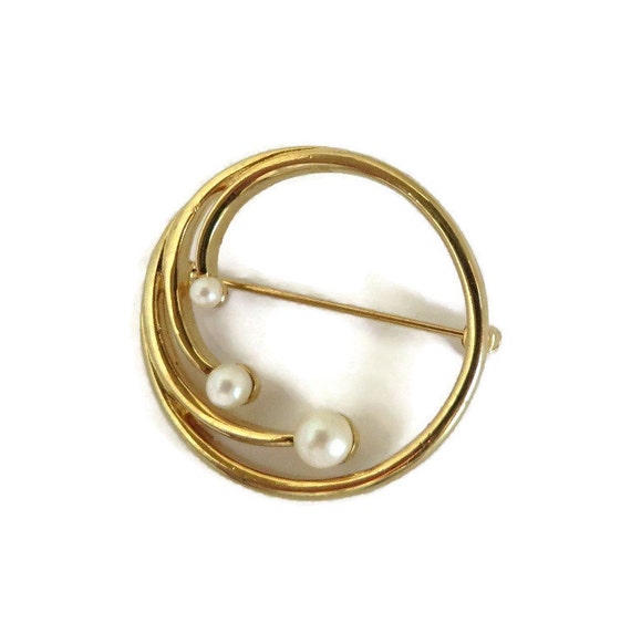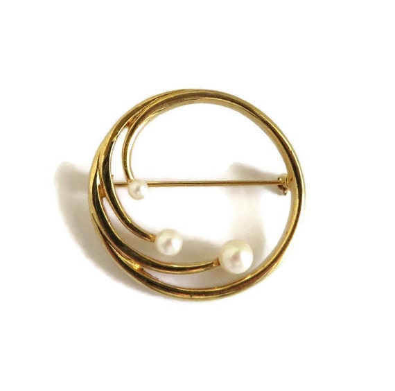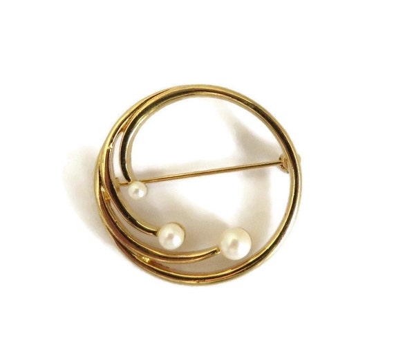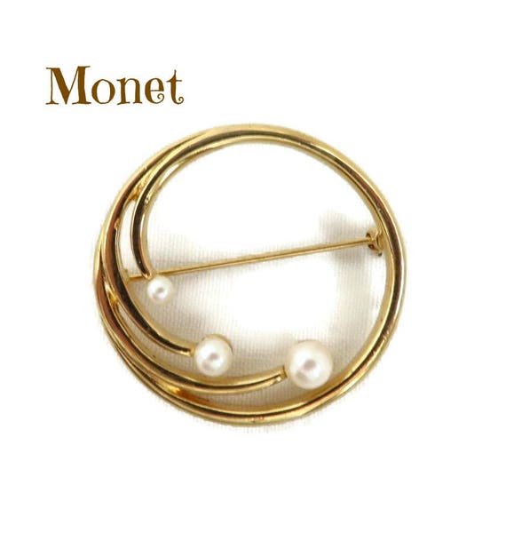 15% OFF coupon on Monet Circle Brooch - Vintage Faux Pearl Gold Tone Circle Pin, Gift idea, Gift Box by LeesVintageJewels