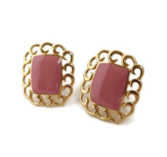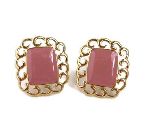 15% OFF coupon on Monet Pink Gold Tone Earrings, Vintage 1970s Dusty Rose Clip-on Earrings by LeesVintageJewels