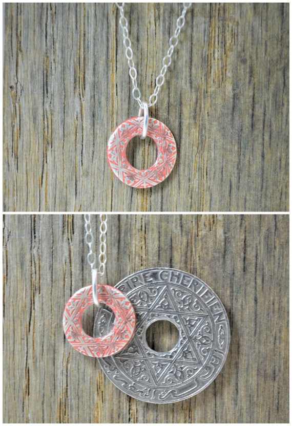 10% OFF coupon on Moroccan Coin Necklace, Dusty Rose Coin Necklace, Coin Art, Morocco, Silver Coin, Moroccan Art, Boho Necklace, Two-Sided, Coin Charm, Charm by Alaridesign