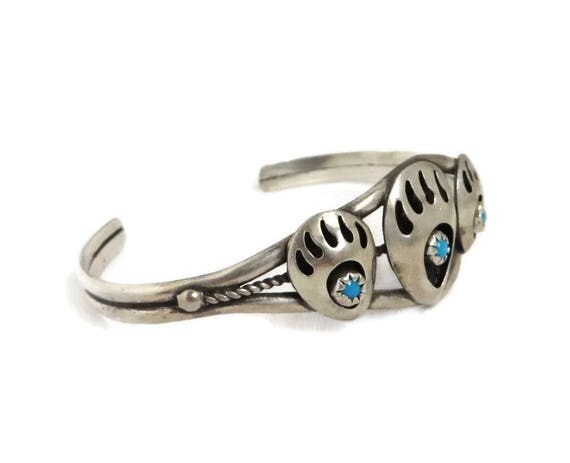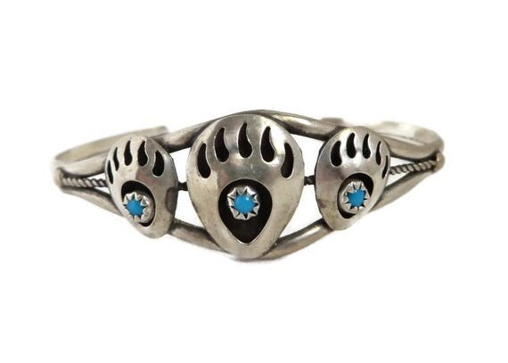 15% OFF coupon on Navajo Bear Paw Cuff, Sterling Silver Turquoise Cuff, Vintage Shadowbox Cuff, Native American Bracelet, FREE SHIPPING by LeesVintageJewels
