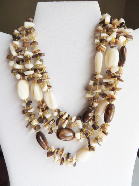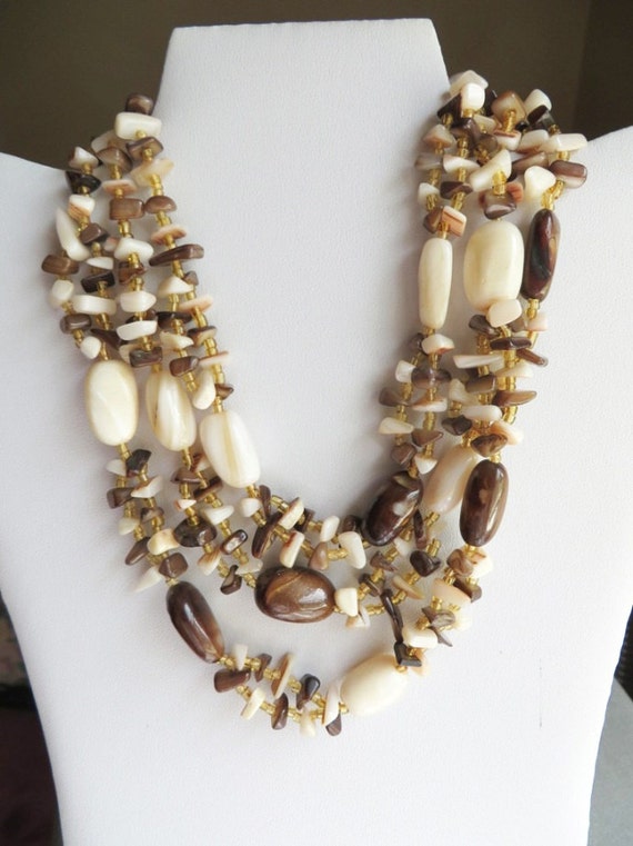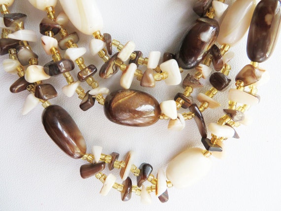 15% OFF coupon on Necklace, Brown Bead Necklace, Vintage Brown Quartz Triple Strand Japan Stone Necklace, Gift for Her by LeesVintageJewels