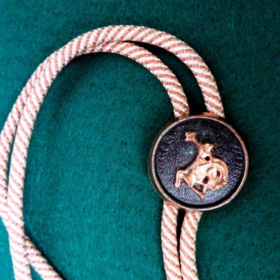 15% OFF coupon on ON SALE! Cowboy Bolo Tie, Vintage Rodeo Bolo, Cowboy Western Tie, Striped Bolo by LeesVintageJewels
