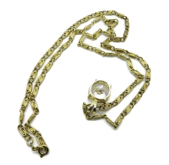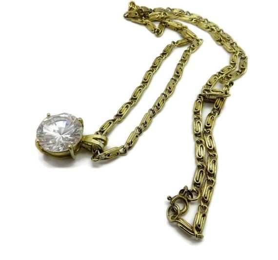 15% OFF coupon on ON SALE! Rhinestone Pendant Necklace, Vintage Gold Tone Chain Link Necklace by LeesVintageJewels