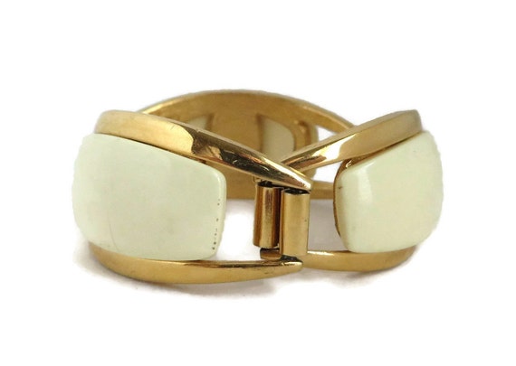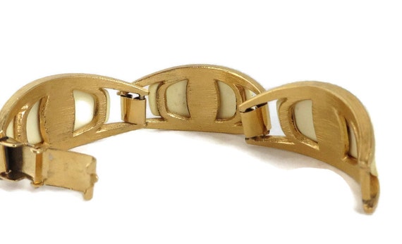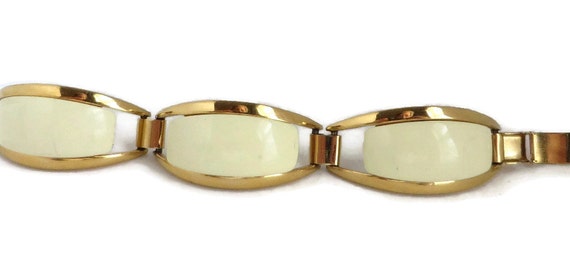 20% OFF coupon on ON SALE! Vintage Cream and Gold Tone Link Bracelet, Lucite and Metal Bracelet by LeesVintageJewels