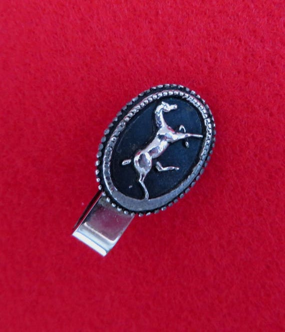 15% OFF coupon on ON SALE! Vintage Horse Tie Bar, Black Silvertone Western Tie Clasp