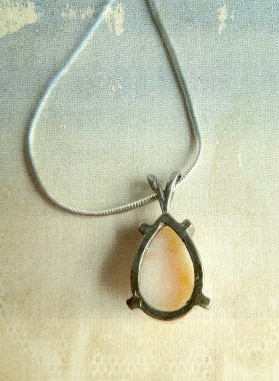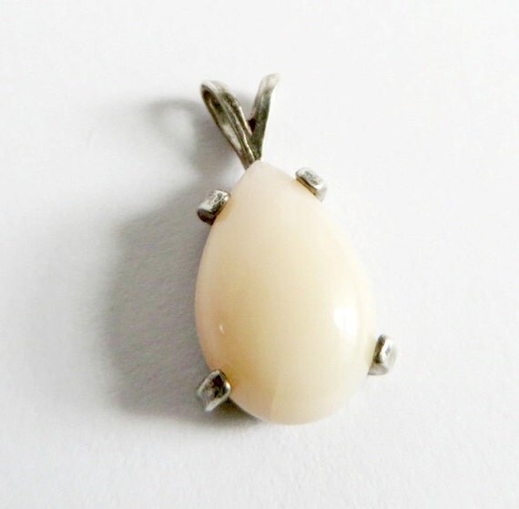 15% OFF coupon on ON SALE! Vintage White Stone Pendant - Sterling Silver Teardrop Shape Pendant by LeesVintageJewels