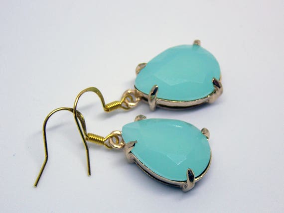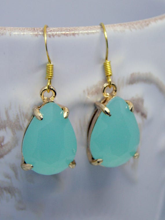 FREE SHIPPING coupon on Opal Mint Green Earrings Opaque Drop Earrings Gold Wedding Bridal Jewelry Green Dangles Retro Style by NickiLynnJewelry