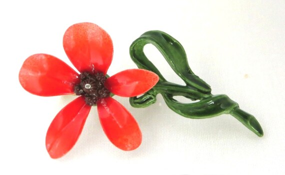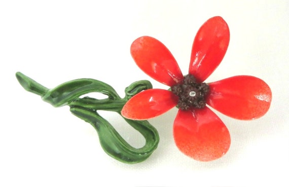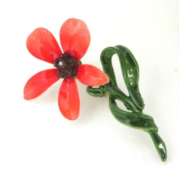 15% OFF coupon on Orange Enamel Brooch, Vintage Flower Brooch, Hippie Pin, MOD Pin, Retro Brooch by LeesVintageJewels
