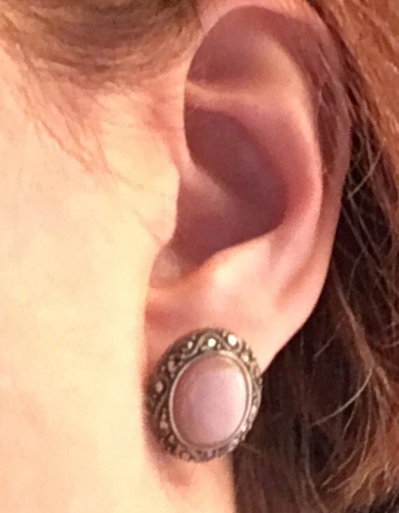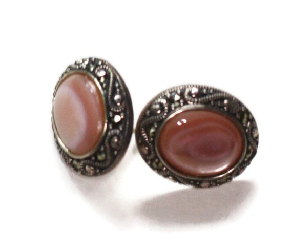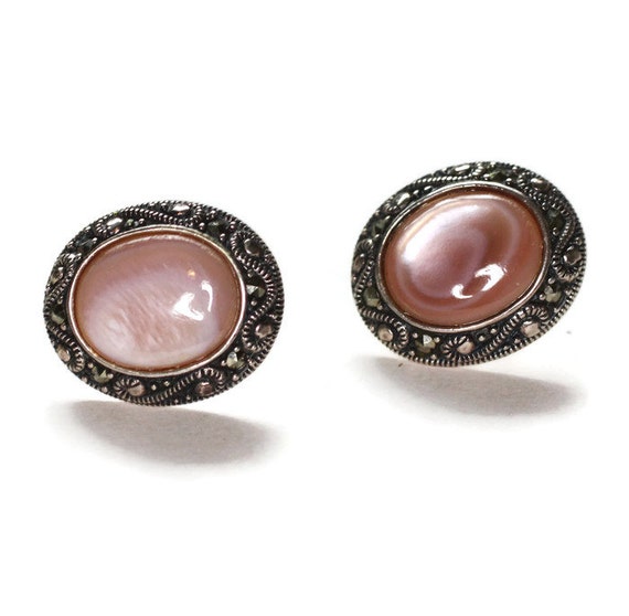 15% OFF coupon on Pink MOP Shell and Marcasite Earrings Posts Sterling Vintage