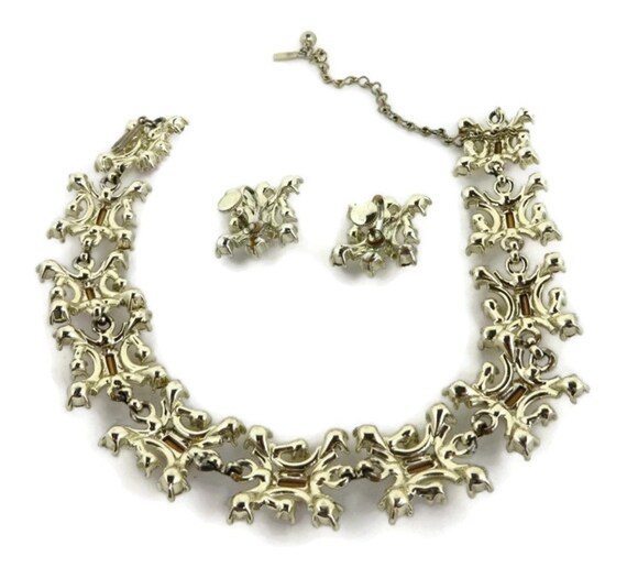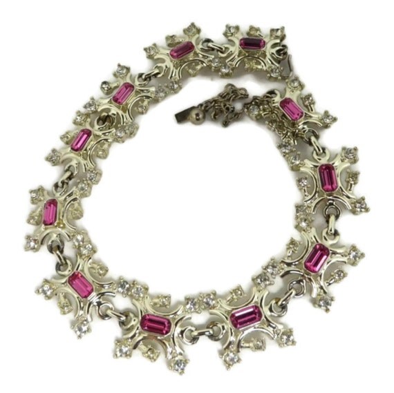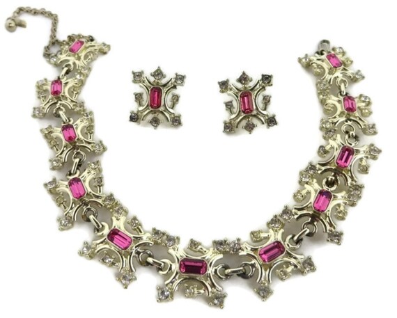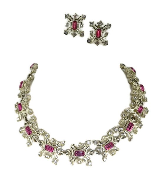 15% OFF coupon on Pink Rhinestone Jewelry Set - Vintage Duane Necklace, Earrings Set, Silver Tone Demi Parure, Holiday Gift by LeesVintageJewels