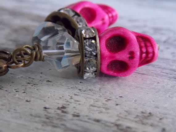 FREE SHIPPING coupon on Pink Sugar Skull Earrings Day of the Dead Festive Earrings Rhinestone Goth Blue Skull Dangle Boho Earrings by NickiLynnJewelry