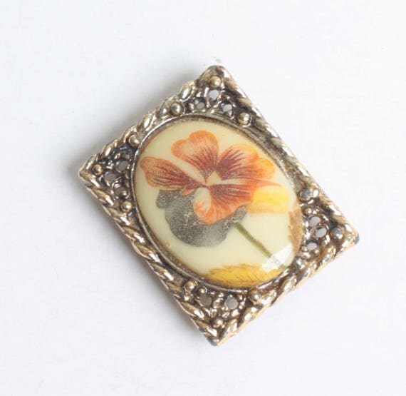 15% OFF coupon on Porcelain Floral Transfer Pendant Fancy Gold Tone Rectangular Frame Vintag by PastSplendors