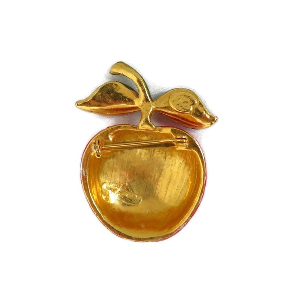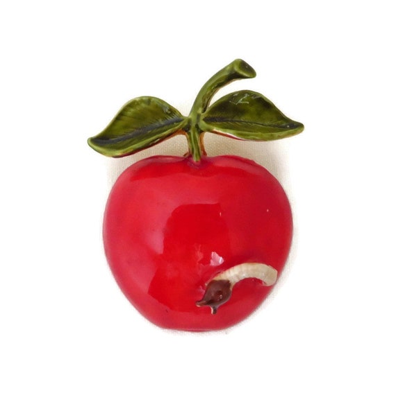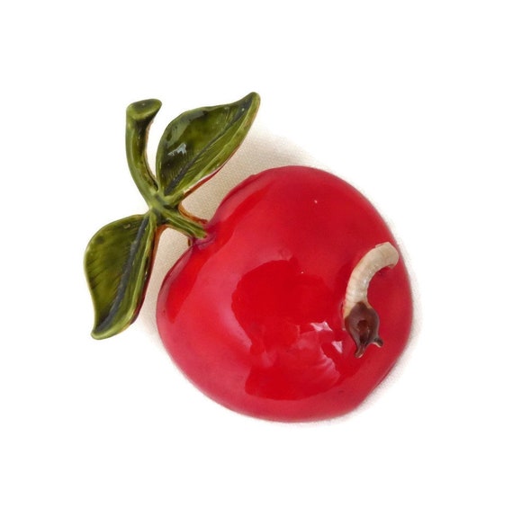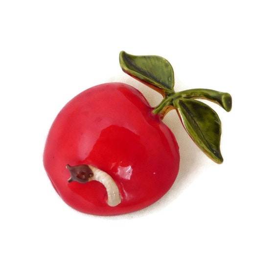 15% OFF coupon on Red Apple Brooch, Vintage Apple Pin, Hattie Carnegie Vintage Jewelry, Red Fruit Brooch with Worm, Vintage Gold Tone Signed Designer Pin by LeesVintageJewels