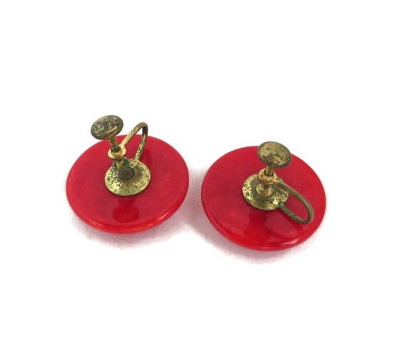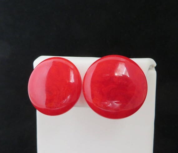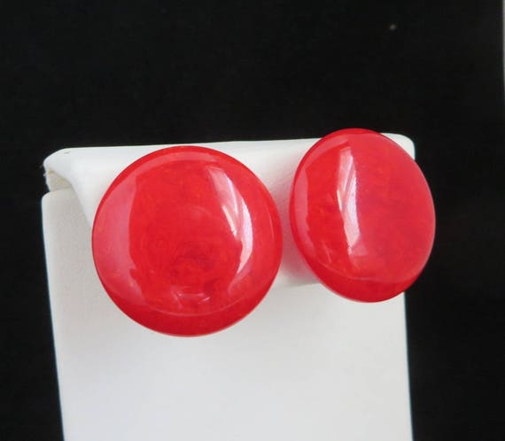 15% OFF coupon on Red Lucite Earrings | Vintage Button Earrings | Cherry Red Screw Backs by LeesVintageJewels