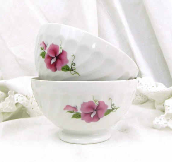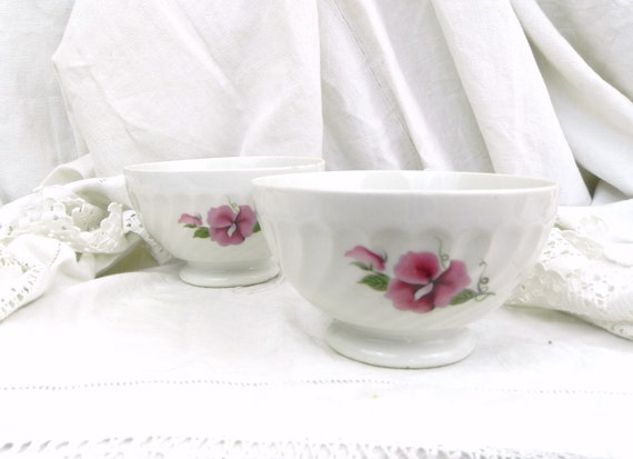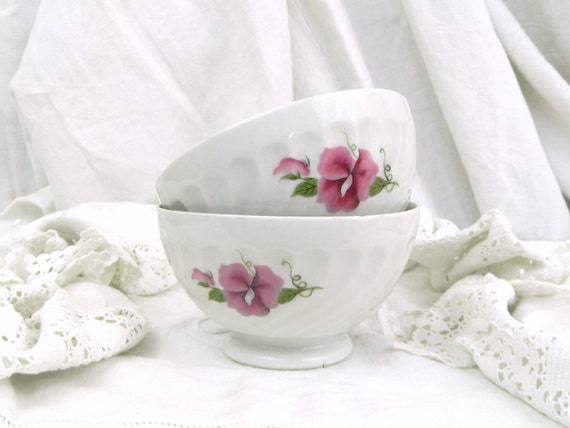 20% OFF coupon on REDUCED TO CLEAR 2 Vintage French White Bone China Cafe au Lait Bowl, with a Sweet Pea Flower Motif / French Country Decor / Retro Vintage by VintageDecorFrancais