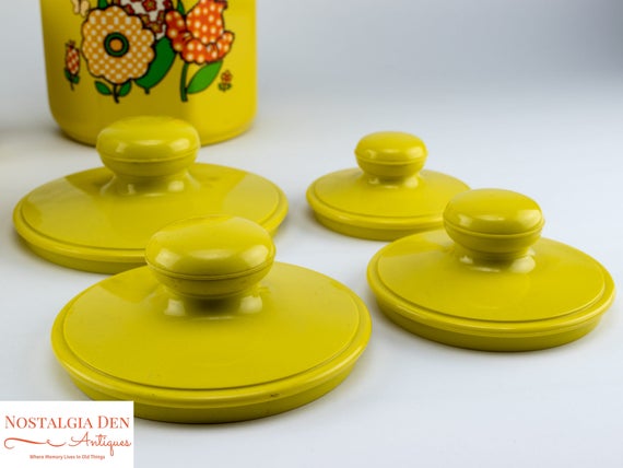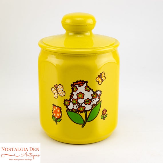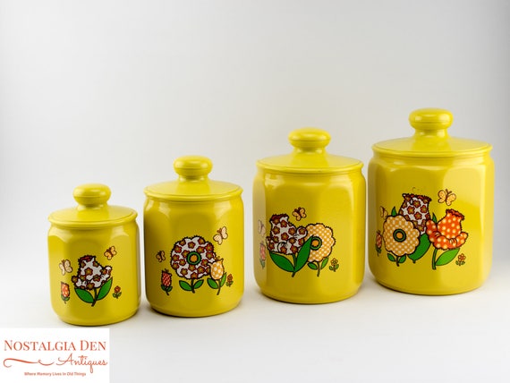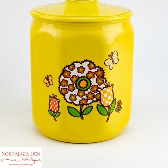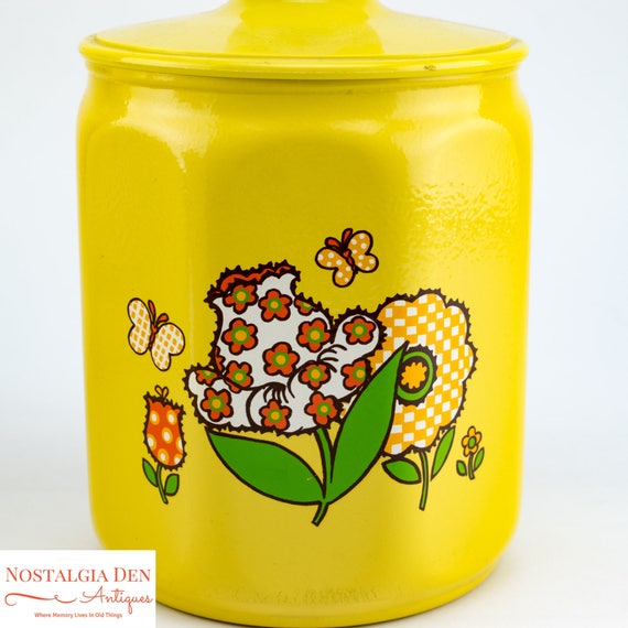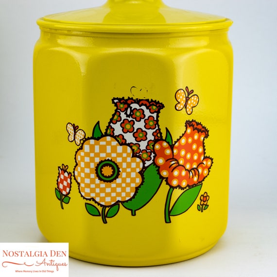 15% OFF coupon on Retro Canister Set | Mod Flower and Butterfly Canisters | Aluminum Kromex Kitchenware by NostalgiaDenClassics