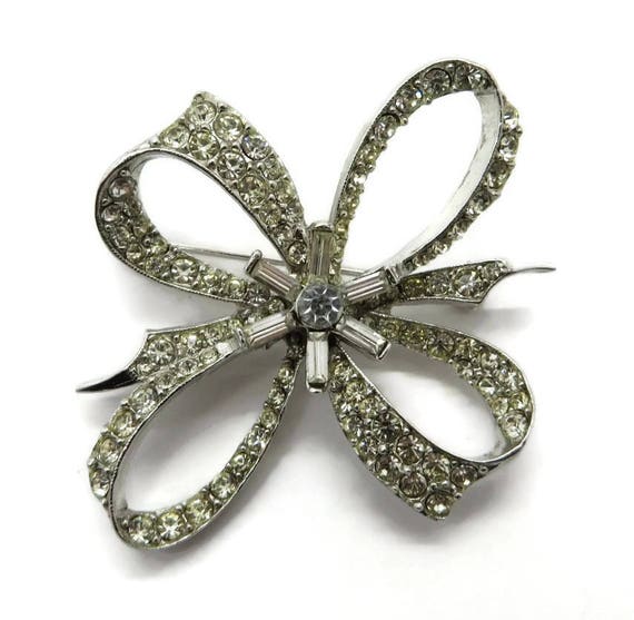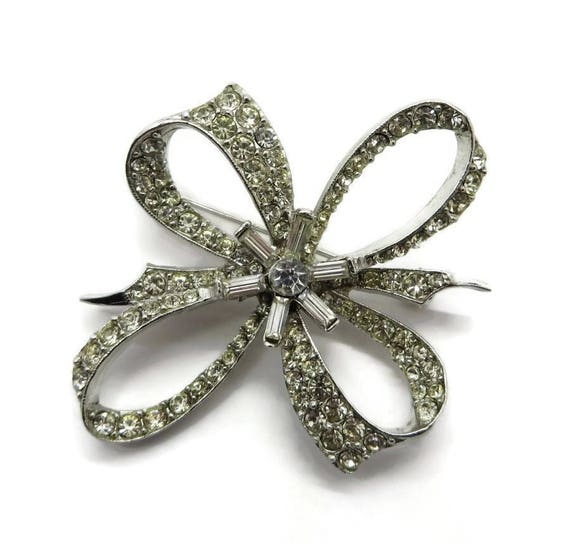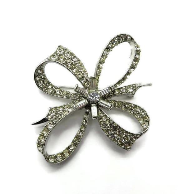 15% OFF coupon on Rhinestone Bow Brooch - Vintage Estate Silver Tone Costume Jewelry Gift Brooch by LeesVintageJewels