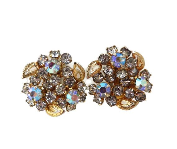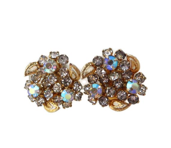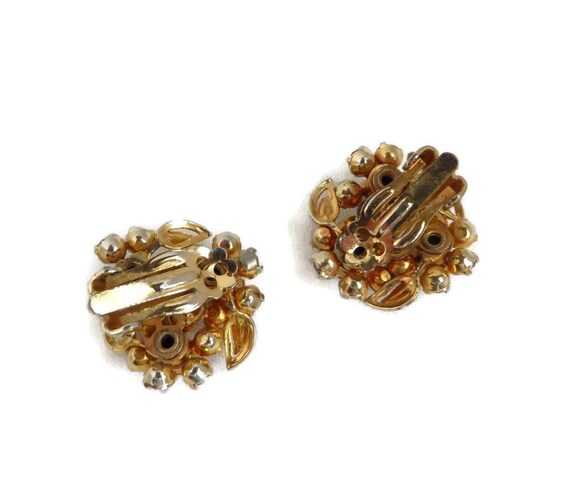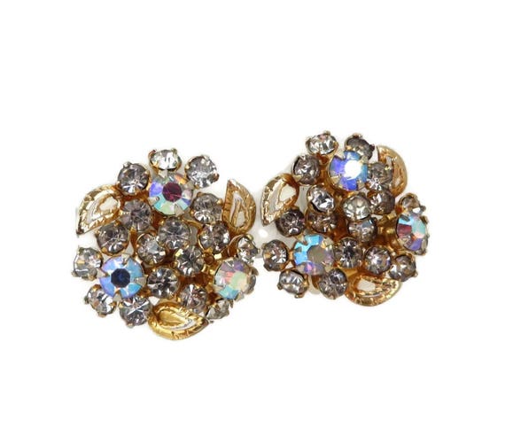 15% OFF coupon on Rhinestone Bridal Earrings - Vintage Rhinestone Gold Tone Flower Clip-ons, Gift for Her, Gift Boxed by LeesVintageJewels