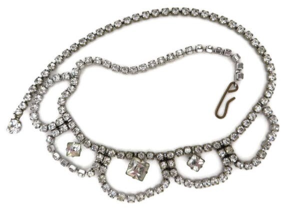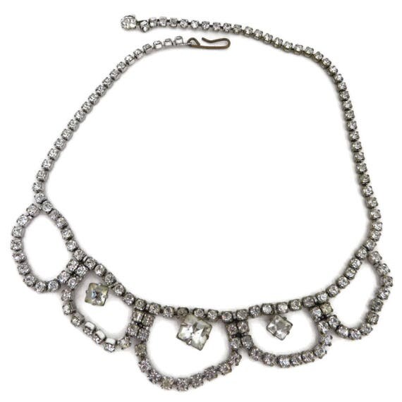 15% OFF coupon on Rhinestone Bridal Necklace, Vintage Silver Tone Rhinestone Statement Necklace, Formal Wear by LeesVintageJewels