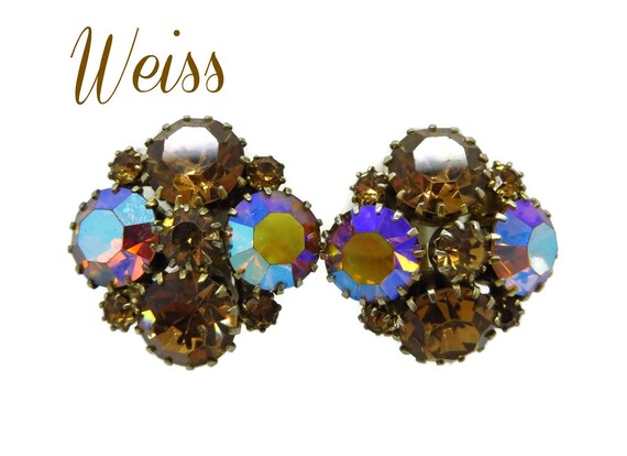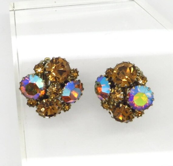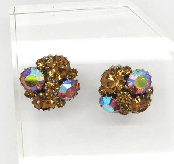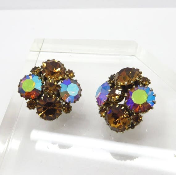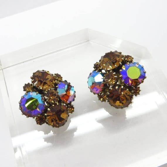 15% OFF coupon on Rhinestone Cluster Earrings, Vintage Weiss Cognac Rhinestone Earrings, Cluster Clip-on Earrings, Gift for Her by LeesVintageJewels