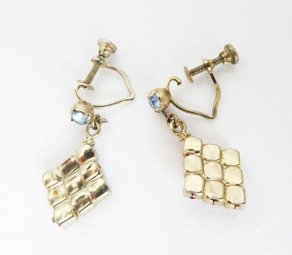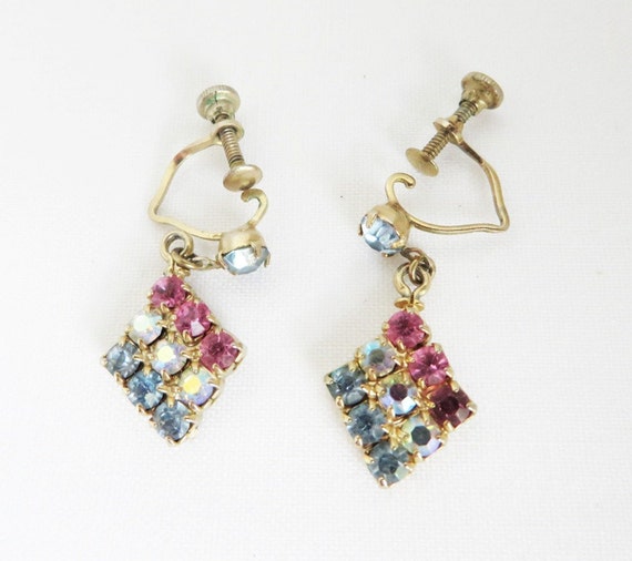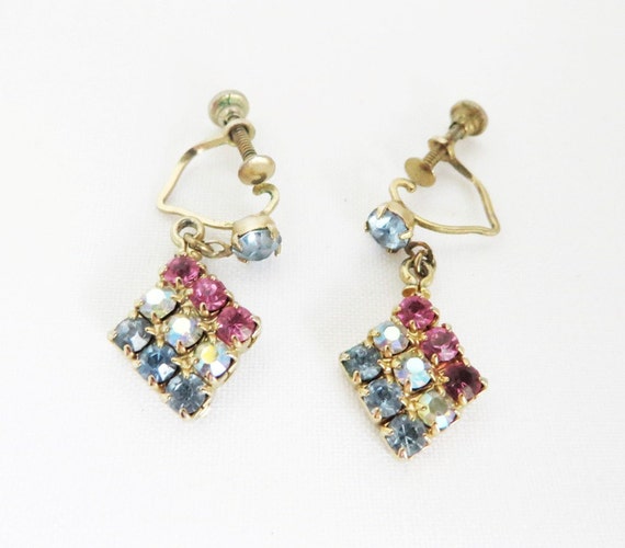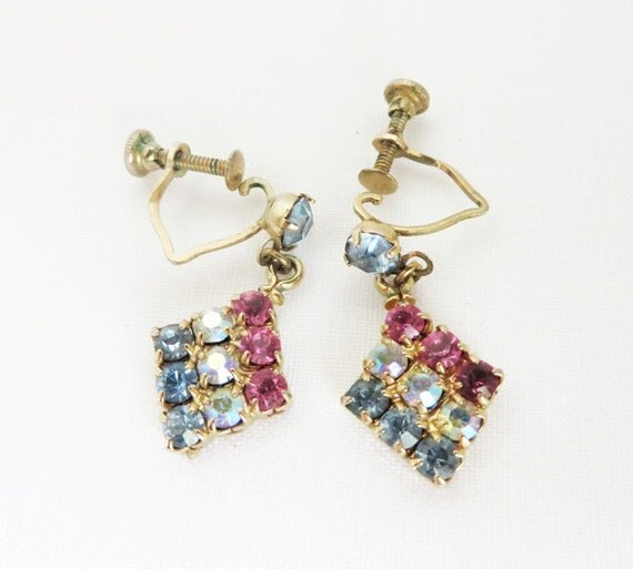 20% OFF coupon on Rhinestone Dangle Earrings, Vintage Red White Blue Screwback Earrings, Diamond Dangles by LeesVintageJewels