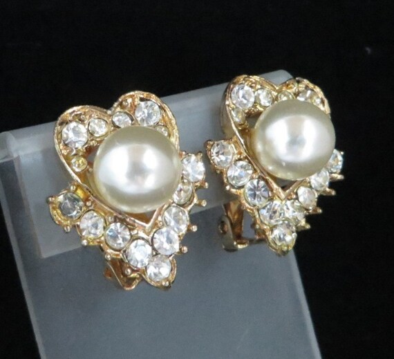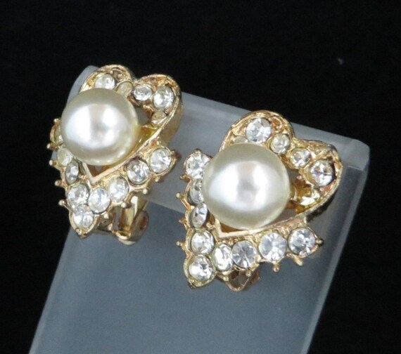 30% OFF coupon on Rhinestone Heart Earrings, Faux Pearl Earrings, Vintage Goldtone Clip on Earrings, Heart and Arrow Earrings by LeesVintageJewels