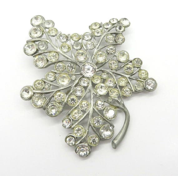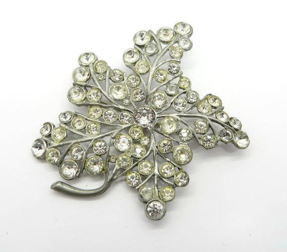 15% OFF coupon on Rhinestone Leaf Brooch, Vintage Silver Tone Rhinestone Large Leaf Pin, 1950s Jewelry Gift for Her by LeesVintageJewels