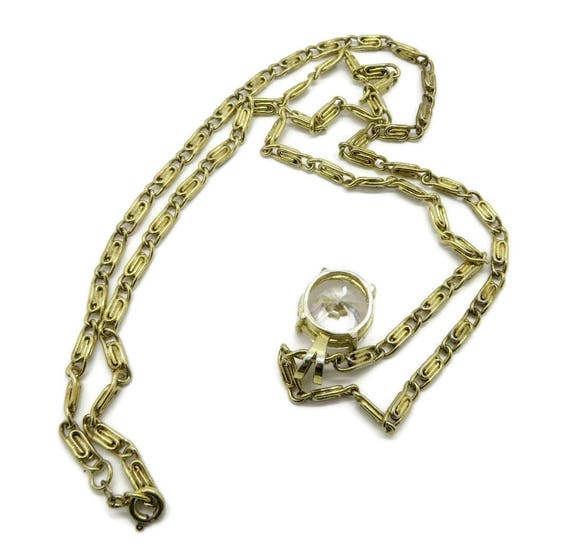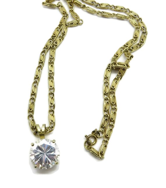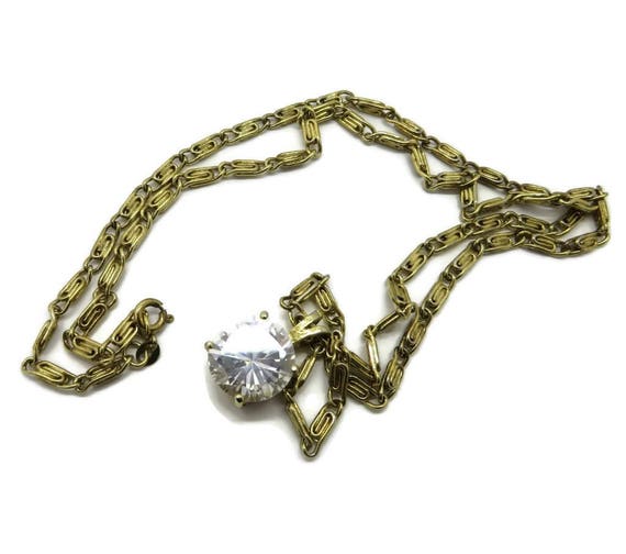 15% OFF coupon on Rhinestone Pendant, Vintage Gold Tone S-Link Necklace, Round Crystal Pendant, Long Chain Necklace, Gift Idea, Gift Box by LeesVintageJewels