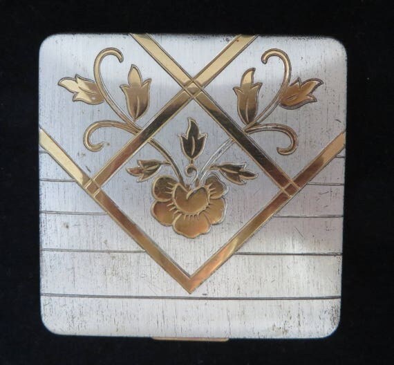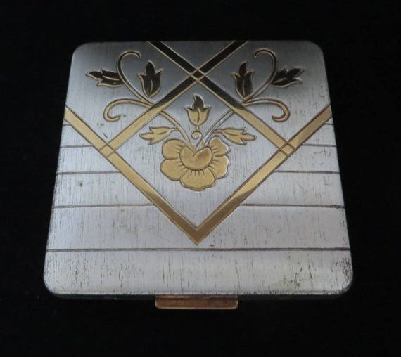 15% OFF coupon on Ritz NY Compact, Vintage Silver Tone Gold Tone Square Makeup Compact, Collector's Compact by LeesVintageJewels