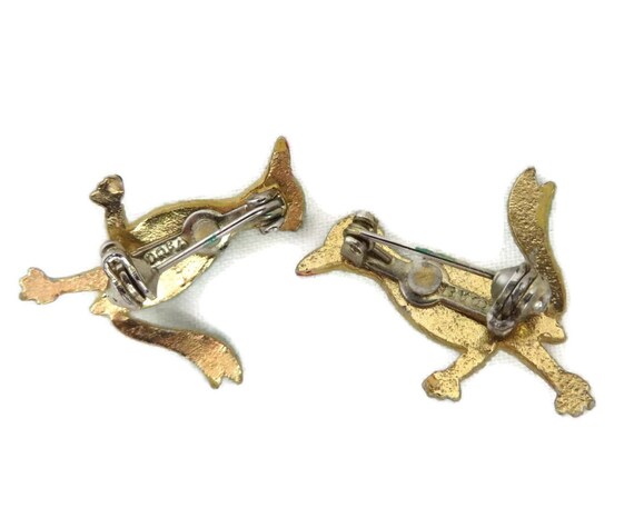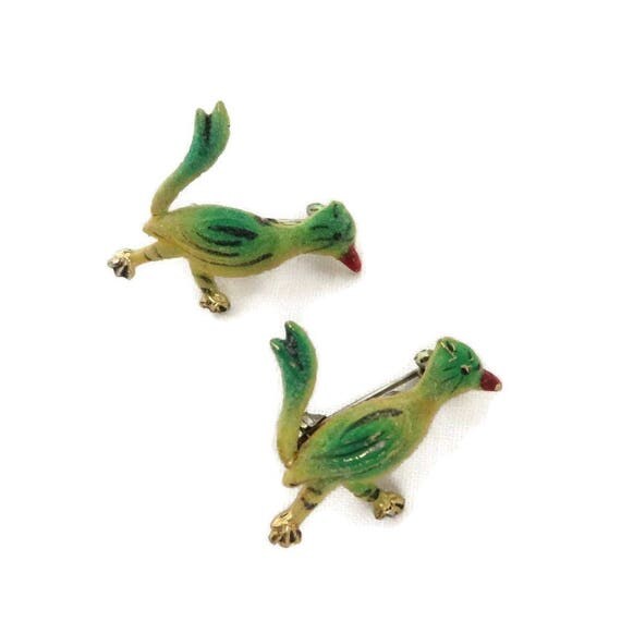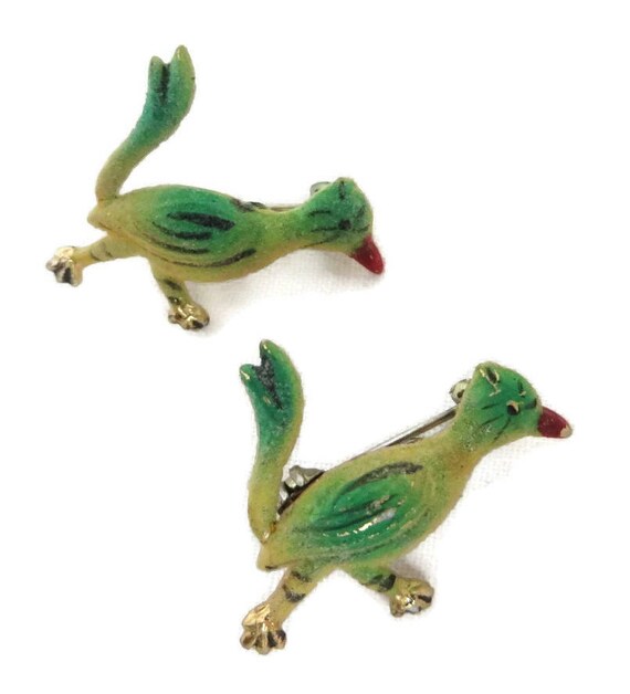 15% OFF coupon on Roadrunner Brooches - Vintage 1950s Korea Green and Yellow Roadrunner Brooch Pair, Gift for Her by LeesVintageJewels