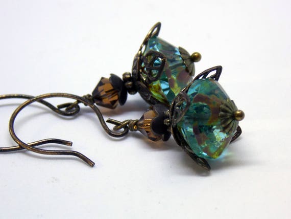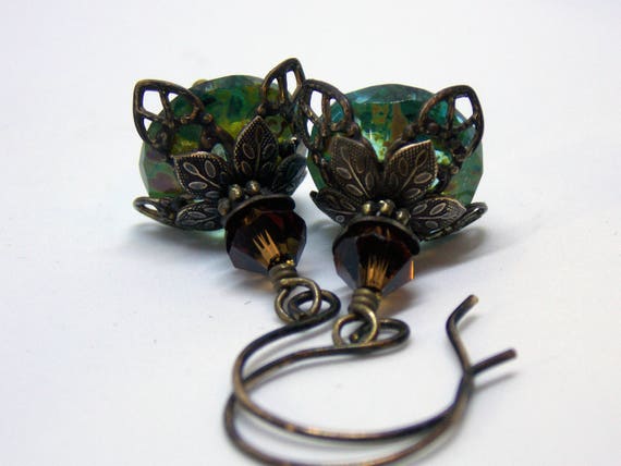 FREE SHIPPING coupon on Romantic Dangle Earrings Victorian Drop Earrings Czech Glass Swarovski Crystals Vintage Style Earrings Rustic Oxidized Brass Jewelry by NickiLynnJewelry