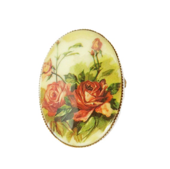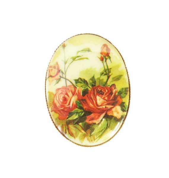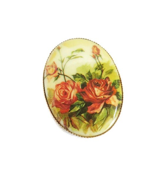 15% OFF coupon on Rose Brooch, Porcelain Pin, Vintage Roses Brooch, 1950s Oval Floral Transferware Pin, Antique Style Muted Roses Pin by LeesVintageJewels