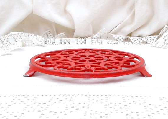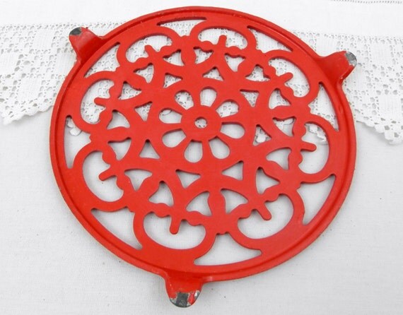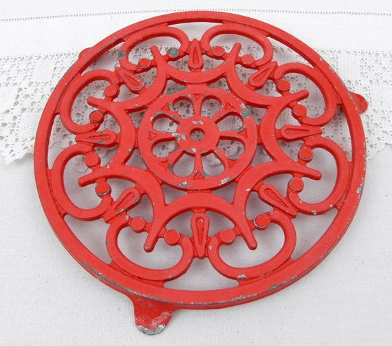 20% OFF coupon on Round Antique French Cast Metal Red Trivet, Hot Plate, Heat Mat, Cottage, French Country Decor, Kitchenware, Kitchen, Plant Stand, Coaster by VintageDecorFrancais