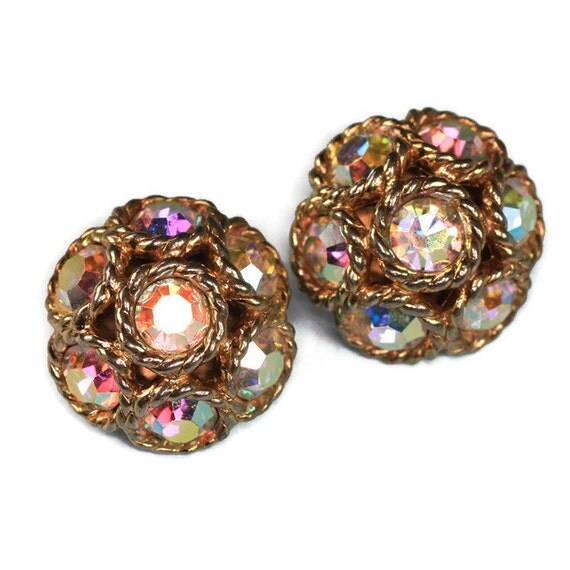 Vintage Sherman Rhinestone Earrings, Dazzling Sherman Rhinestone Earrings. Peacock Blue Rhinesones, Electric AB Hi End Costume Jewelry. Aqua by TheOldJunkTrunk