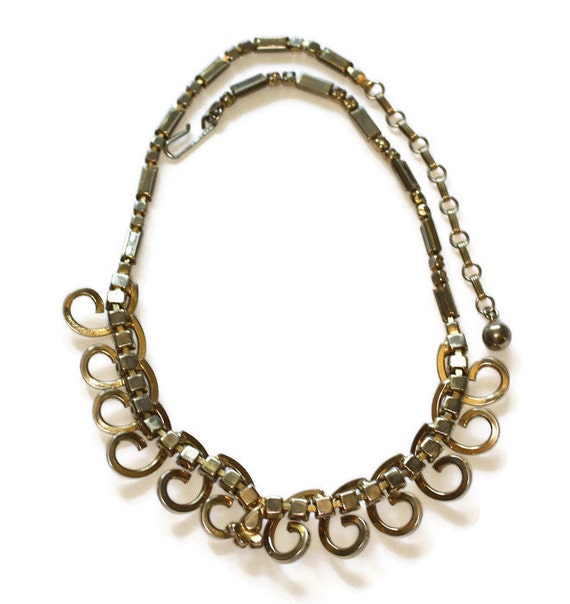 Clasic Vintage Coro Choker Necklace Textured Goldtone Designer Signed Articulated Links Mid Century Jewelry by JoysShop