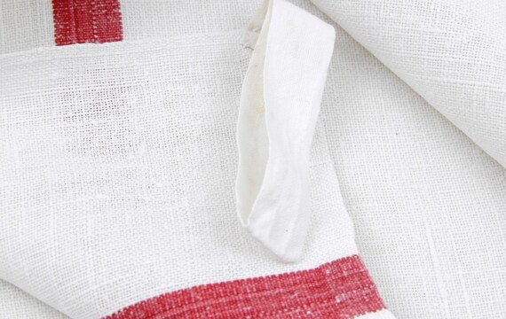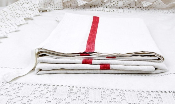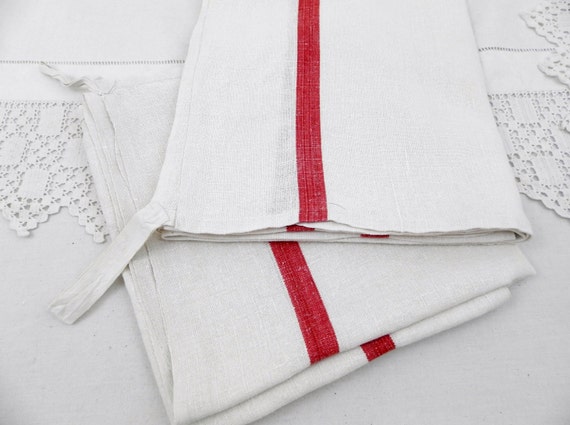 20% OFF coupon on Set 2 Large Antique French Cotton Tea Towels with Woven Red Stripes Hanging Loop, French Country, Kitchen Decor, Provencal, French Decor by VintageDecorFrancais