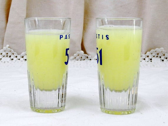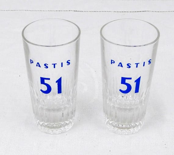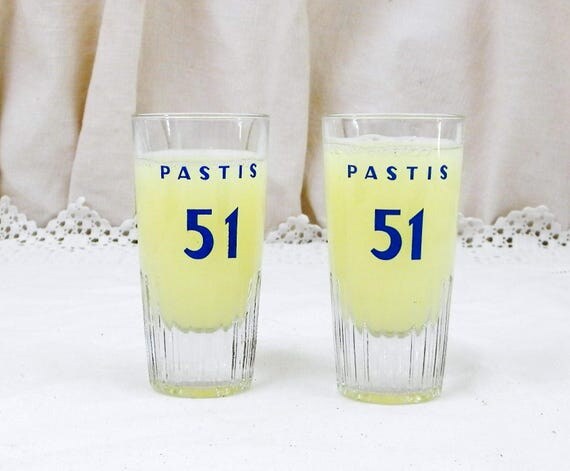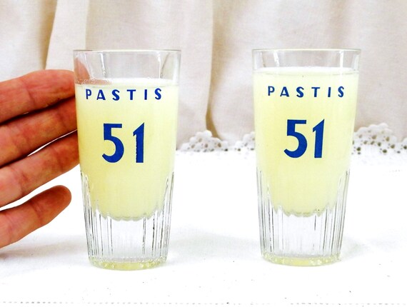 20% OFF coupon on Set 2 Small Vintage French Pastis 51 Glasses, Retro French Cote D'Azur Bistro Decor, Pair Anisette Aperitif Momie or Momiette Glasses by VintageDecorFrancais