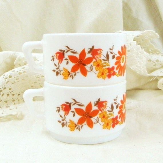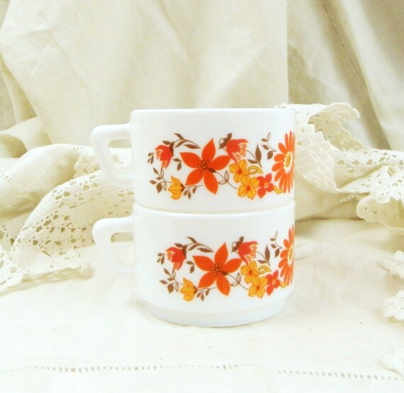 20% OFF coupon on Set of 2 Vintage French 1970s Arcopal Coffee Cups / Retro Kitchenware / Kitchenalia / Retro Home Decor / Milk Glass / Espresso/ French Funky by VintageDecorFrancais