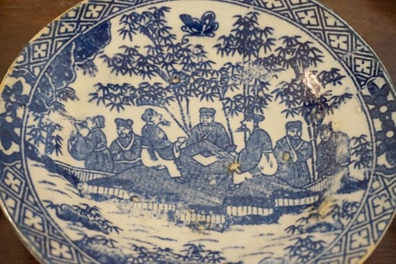 Noritake candy dish, small serving plate, 1930's era, scenic 3 women one playing cello, green border, hand painted two handles gold rimmed by MaggiesCornerStore