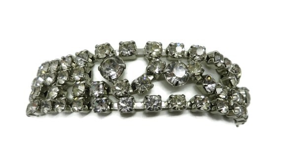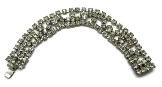15% OFF coupon on Signed KRAMER Rhinestone Bracelet | Vintage Multi-Row Crystal Rhinestone Link Bracelet | Bridal Jewelry by LeesVintageJewels