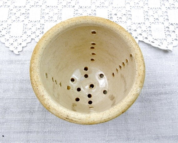 20% OFF coupon on Small Antique French Stoneware Cheese Faisselle Straining Pot, Pottery Dairy Cream Cheese Drainer from France, Retro Cookware Kitchen Mold by VintageDecorFrancais