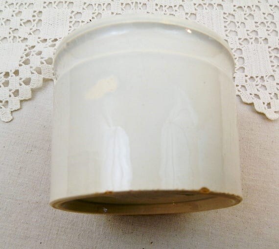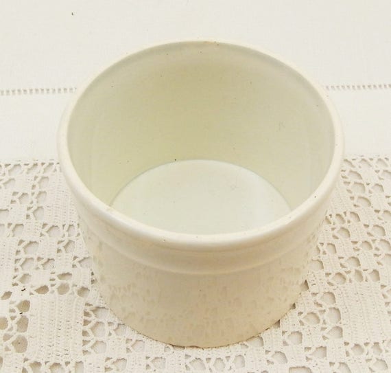 20% OFF coupon on Small Antique French White Glazed Confit Pot by Creil et Montereau Faience, Earthenware Pate Rillette Bowl, Ceramic Shabby Chic French Decor by VintageDecorFrancais