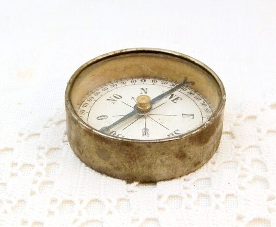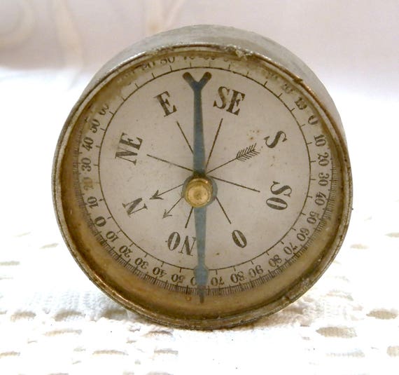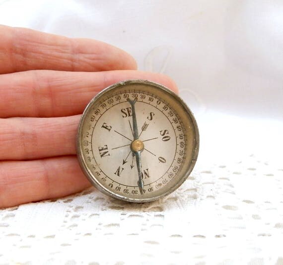 20% OFF coupon on Small Antique Glass and Metal Framed French Compass and Mirror, Round Compass from France, Map Reading, Vintage Hiking Camping, Curios by VintageDecorFrancais