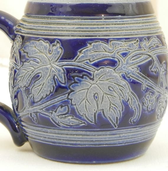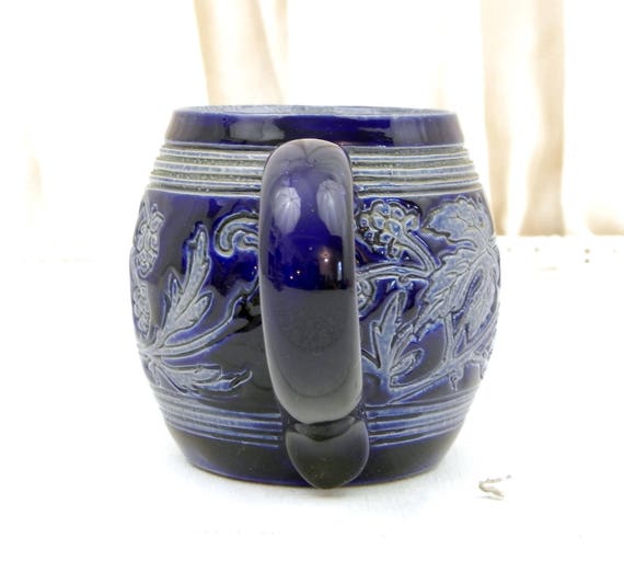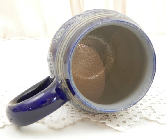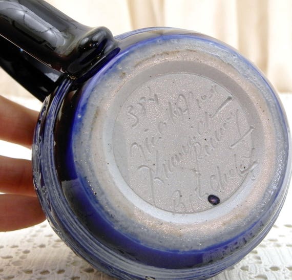 20% OFF coupon on Small Handmade Vintage Ceramic Beer Mug with Sgraffito Hop Pattern in Blue Glaze, China Pot Belly Cup with Engraved Motif, Chopine a Biere by VintageDecorFrancais