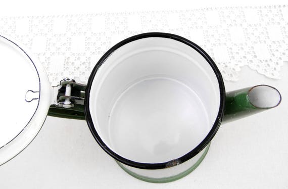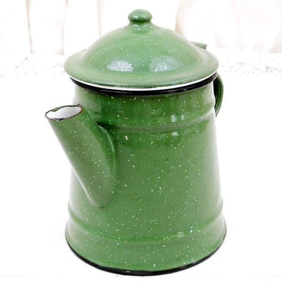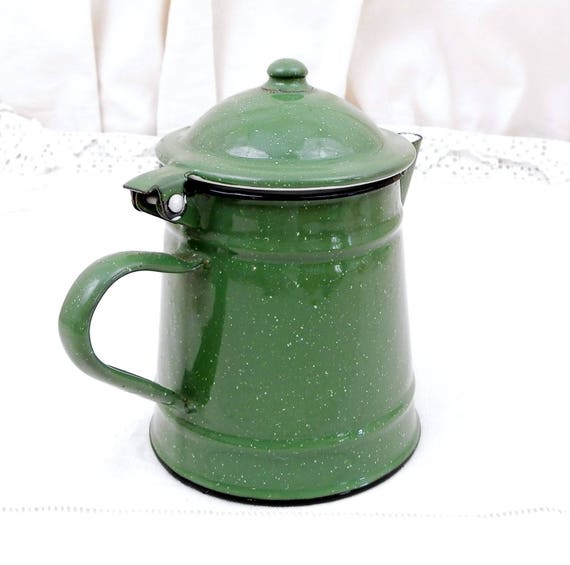 20% OFF coupon on Small Vintage Excellent Condition Green Speckled Enamelware Coffee Pot, French Child's Toy Cafetiere, Country Cottage Kitchen Enamel Decor, by VintageDecorFrancais